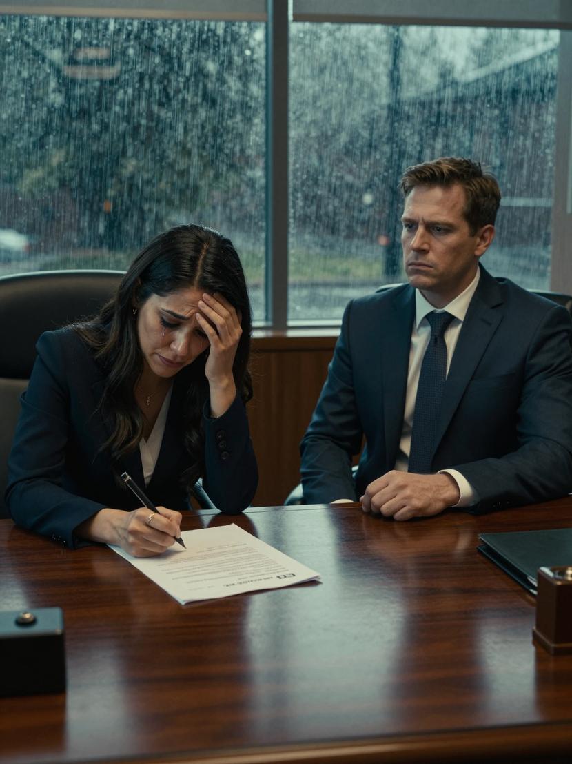 Rain hammered relentlessly against the towering windows of the lawyer’s office, echoing the tempest roiling inside Isabella Moreno. The divorce papers lay on the gleaming mahogany desk—sterile, irrevocable, and merciless.