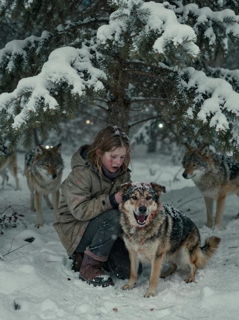 When the coyotes surged nearer, eyes glowing through the swirling snow, one lunged. Bandit exploded forward in a blur of motion and rage, meeting the attack head-on with snapping teeth and raw fury. Snow erupted around them as they crashed, one dog standing against many. He was hurt, bleeding, but never backing down. When the pack finally retreated, deciding this fight wasn’t worth the cost, Bandit collapsed beside me—shaking, wounded, but still alive.