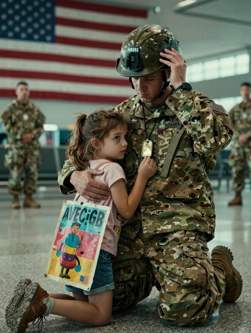 Then, stepping forward, she wrapped her small arms around the soldier’s neck, the embrace quiet but profound—a passing of legacy, not reunion.