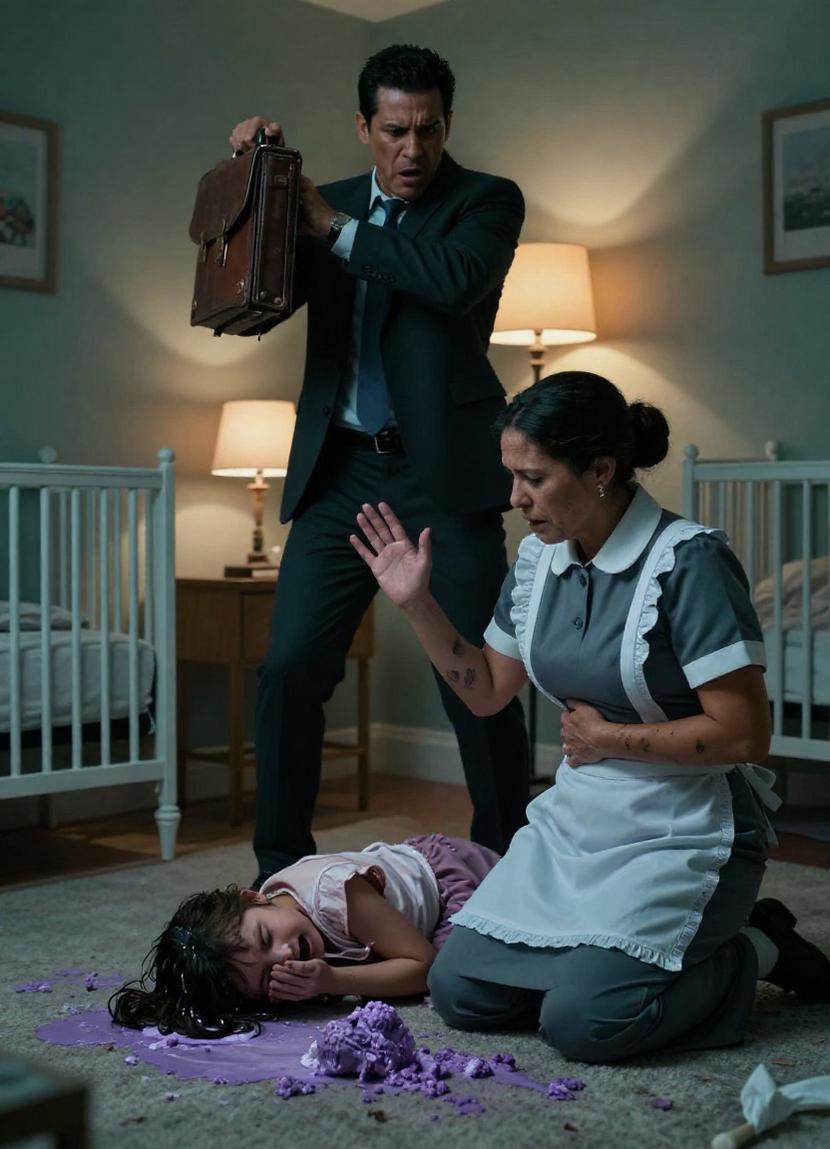 ‘Ambulance and police to Shadowpine Manor now!’ I barked, eyeing Marina protectively curled on the floor. ‘The housekeeper… she was choking my daughter!’
