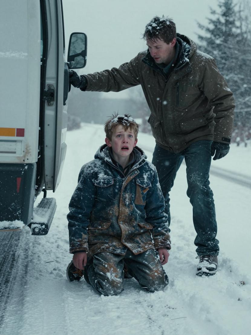 Ich flehte Brady an, meine Stimme zerbrach im Wind. “Ich habe nichts falsch gemacht! Bitte, ich werde brav sein – ich verspreche es!” Doch die Antwort war Schweigen, während der Motor des Trucks wieder aufheulte und Kies zu Eisfunken vor meinen verschwendeten Händen spritzte. Dann – etwas, womit niemand gerechnet hatte – ein schwerer Aufprall aus der Ladefläche, gefolgt von einer Gestalt, die durch die Luft geschleudert wurde.