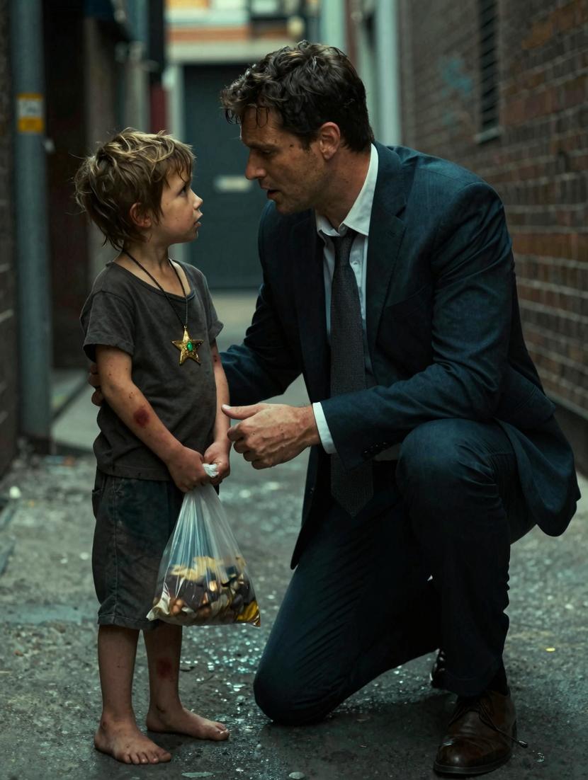Daniel Mercer’s life fractured in an instant the moment his eyes locked onto the street boy slumped against the cold pavement. Barefoot, grime staining his skin, clutching a worn plastic bag like a lifeline — and hanging from his neck, a radiant gold star-shaped pendant, crowned with a glimmering emerald. It was the very same necklace that had haunted Daniel’s dreams for five long years. Only three of these pendants existed; one had belonged to his daughter, Lucia, who vanished without a trace half a decade ago.