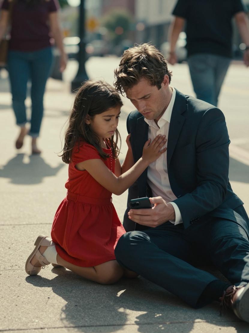 Not far away, a little girl in a dazzling red dress was chasing butterflies with carefree abandon. The sudden, sharp sound of Sebastian’s fall froze her in place. Without hesitation, she darted toward him, her small hand trembling as she gently pressed it to his chest. Softly, almost reverently, she whispered, “He’s still breathing.”