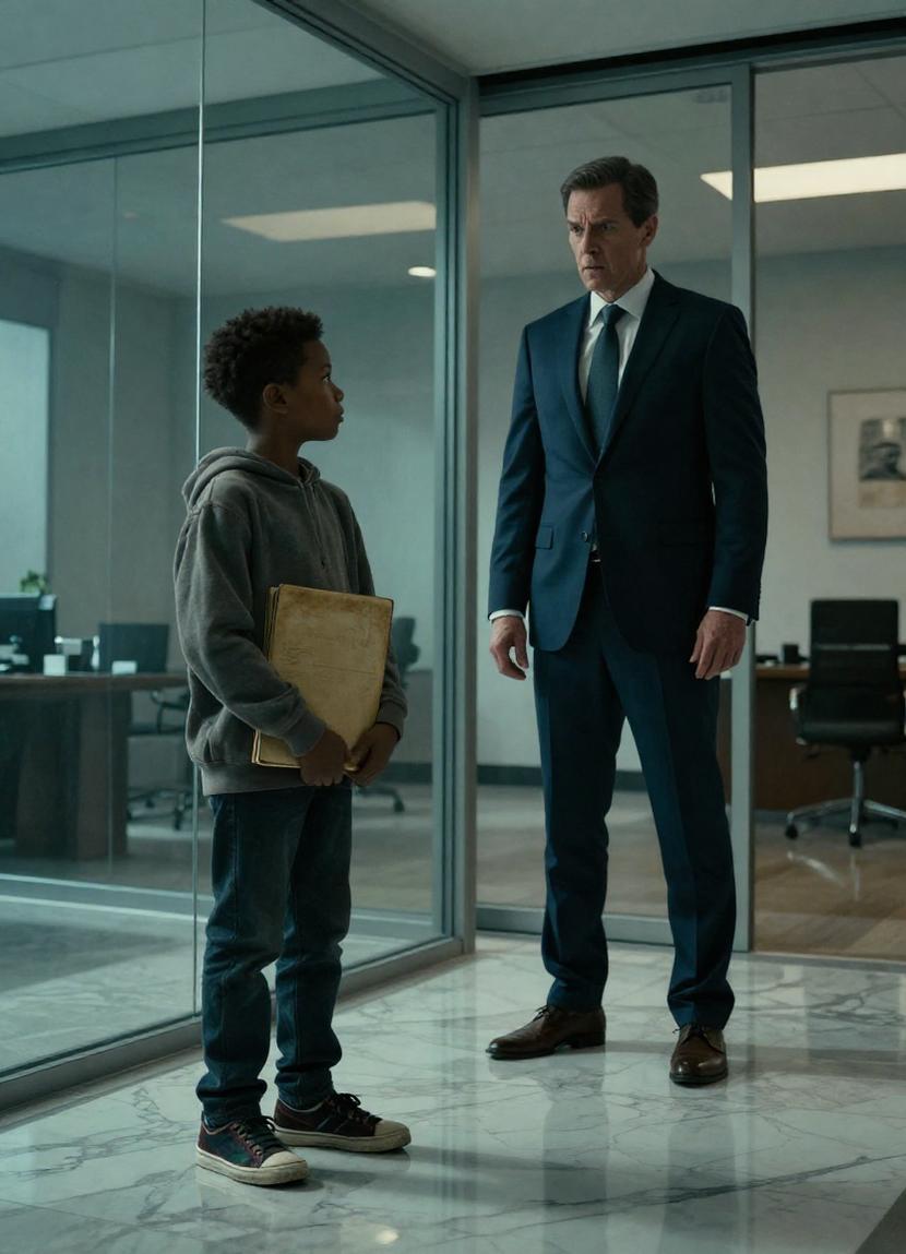 For a suspended moment, Mr. Hawthorne said nothing, transfixed. Then, deliberately, he lifted his eyes to meet Liam’s. The boy’s stillness was unnerving; no tremor, no restless shift—only pale, composed solemnity, as though carrying the weight of decades in a single breath.
