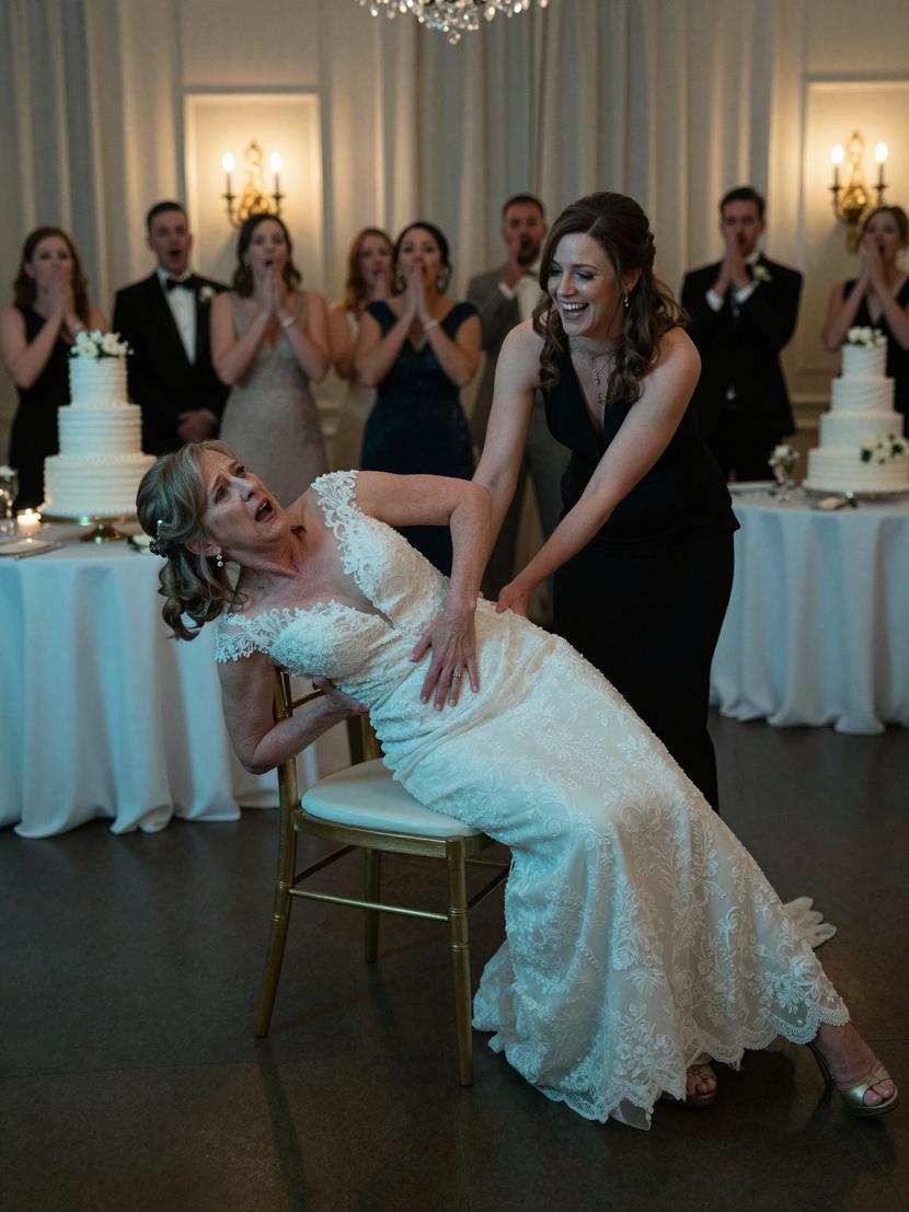 Her expression didn’t waver. Then, in a sudden, cruel gesture, she yanked the chair away beneath me. Gasps erupted as I hit the floor, the shockline thickening the air—until the grand double doors swung wide open.