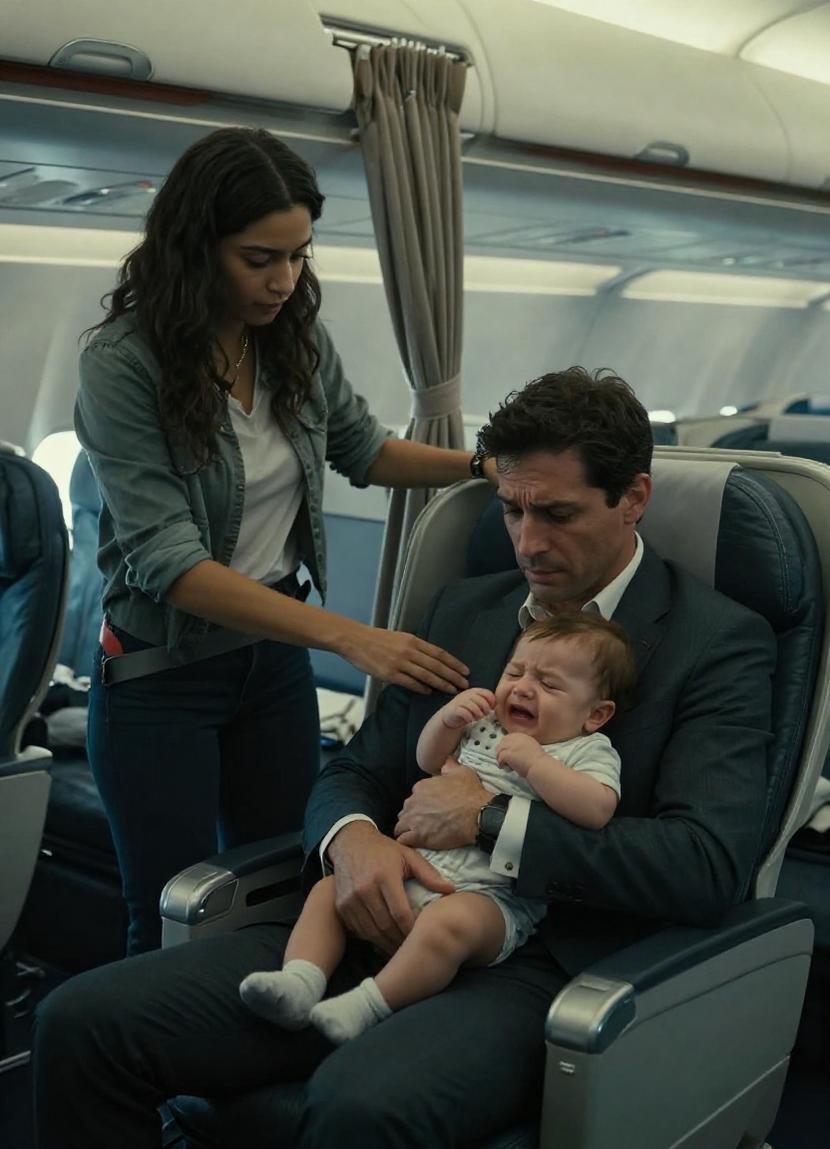 In his arms, his three-month-old son Mateo cried without mercy. This wasn’t the usual infant protest of hunger or discomfort; it was a raw, piercing scream, a howl of anguish that Carlos was utterly incapable of soothing. For two relentless hours, Mateo’s wails had filled the cabin. Carlos, clad in a €5,000 suit now soaked with cold sweat, had tried every suggestion from nannies and parenting manuals: bottles, pacifiers, pacing the aisles, rhythmic rocking. Nothing stilled the storm.