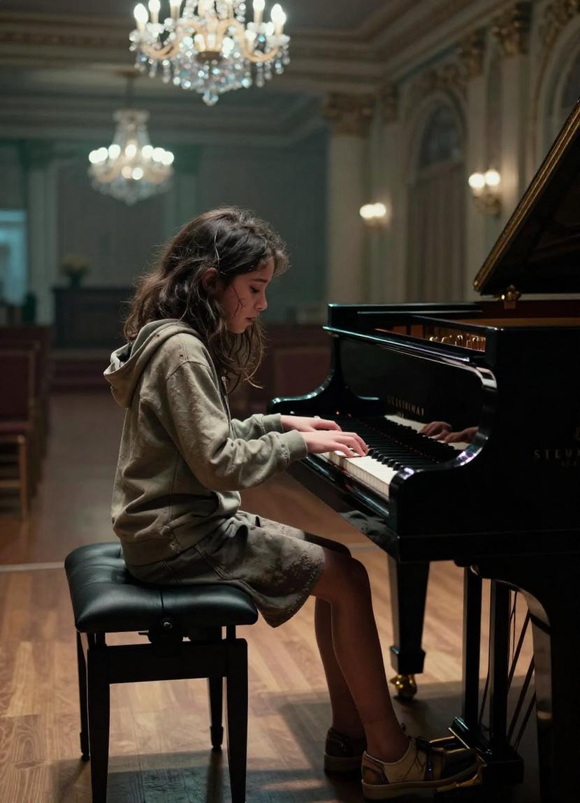 No one offered the girl water or asked her name. Phones hovered like vultures as she took the vast stage, her small frame swallowed by its enormity. On the gleaming Steinway bench, her legs barely reached, feet hovering uncertainly above the pedals. But fingers dirty and trembling settled with sureness on the keys. She closed her eyes, took a breath that quavered, and began.