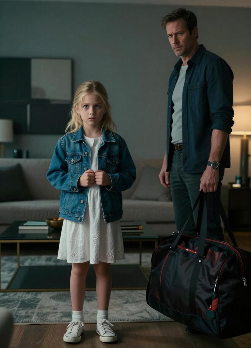 Just then, a quiet figure appeared near the doorway—a small girl with blonde hair tumbling softly around her shoulders, her intense blue eyes too sharp, too knowing for her age. She wore a white dress paired with an oversized blue denim jacket. Sophie, the housekeeper’s daughter, had been quietly sitting nearby, drawing on the floor, unnoticed.